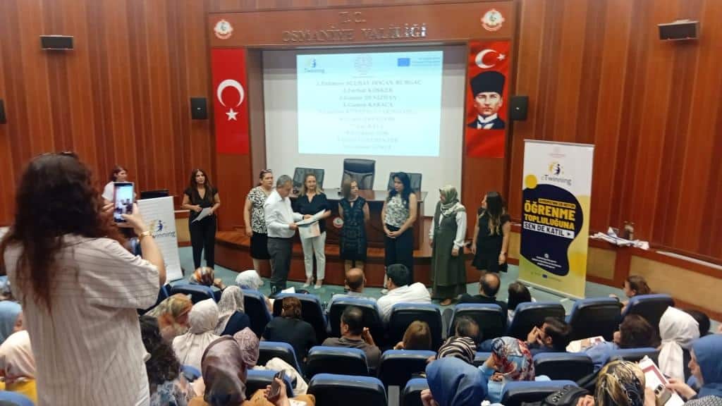 Osmaniye İl Milli Eğitim Müdürlüğümüzün düzenlediği eTwinning ödül törenine katılan proje geliştirip ulusal kalite etiketi alan öğretmenlerimiz ''kalite etiketi'' ödüllerini almıştır. Projede yer alan tüm öğrencilerimizi ve proje çalışmalarına destek veren velilerimizi tebrik ederiz.